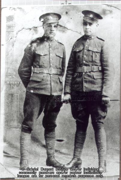 | Description: | Photograph of two soldiers standing. Photograph appears to have been taken in a studio. |