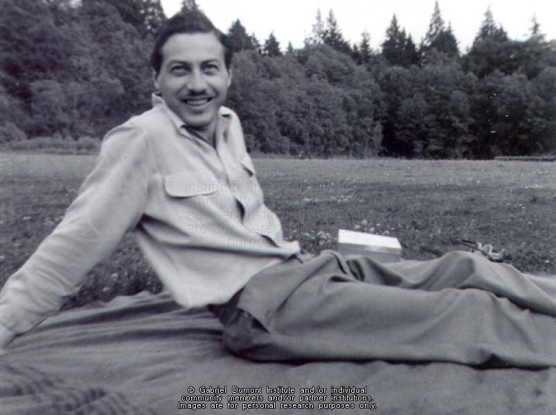 | Description: | Photograph of Howard Adams relaxing outdoors, 1952. |