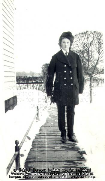 | Description: | Photograph of the Commissioner's Daughter: "Pretty cute, eh? In her Dad's uniform. A perfect Doll!" |