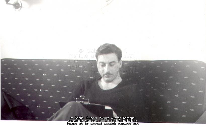 | Description: | Photograph of Howard Adams seated on couch, late 1940s or early 1950s. |