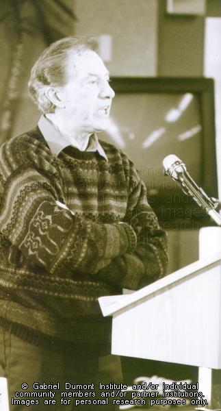 | Description: | Photograph of Howard Adams speaking in the late 1990s. |
