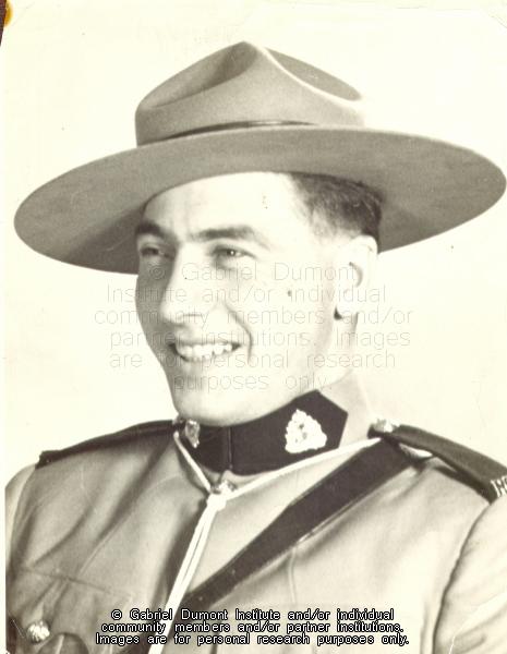 | Description: | Photograph of Corporal Howard Adams, Mountie, Red Serge and Stetson. |