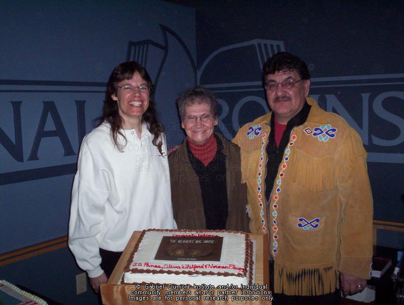 Photograph of Joanne Panas, Olive Whitford, and Norman Fleury, authors of The Beavers' Big House, at a book launch at McNally Robinson book store in Winnipeg, Manitoba, 2005. |