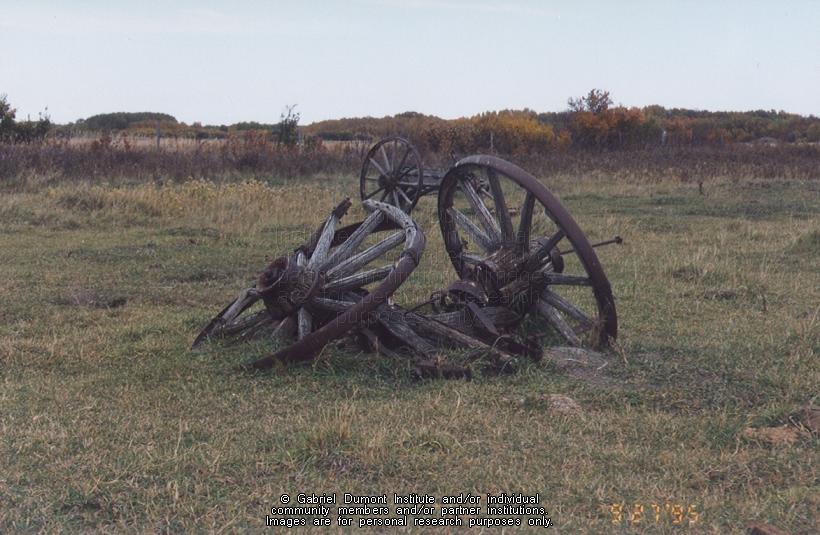 Description: Photograph of old abandoned carts at Round Prairie, Saskatchewan. This image is to be used for research purposes only. The reproduction of this image in whole or in part is strictly prohibited without the permission of the copyright holder.