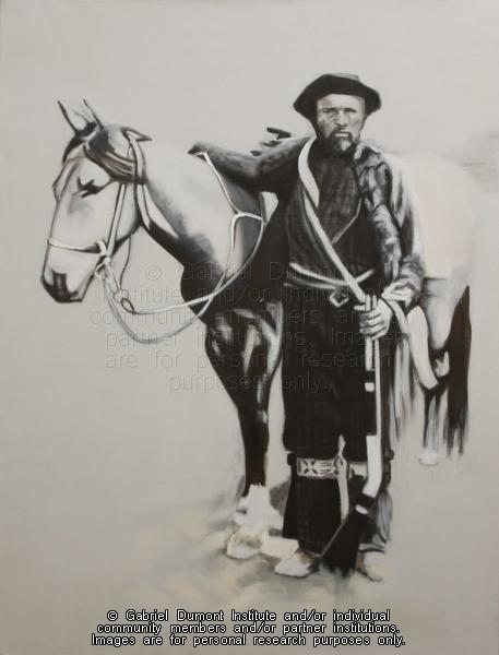 | Description: | Photograph of a painting of Métis leader Gabriel Dumont by artist Tannis Nielson. (Back cover art of New Breed, Winter 2006). This item is part of the Gabriel Dumont Institute Museum Collection. |
