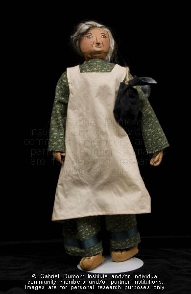 | Description: | Photograph of papier-mâché doll made by Métis artist Sherry Farrell Racette, from her solo exhibition, Dolls for Big Girls, Rosemont Art Gallery, Regina, 2000. This item is part of the Gabriel Dumont Institute Museum Collection. |