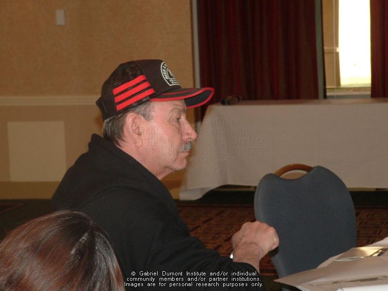| Description: | Photograph of Paul Peppin, Michif speaker from Yorkton, Saskatchewan, at the Michif Speakers Conference, March 11, 2006, Saskatoon, Saskatchewan. Delegates from Saskatchewan, Alberta and Manitoba gathered to form the National Michif Speakers Association (NMSA), which consists of Michif-speaking community people dedicated to the protection and promotion of the Michif-Cree language. |