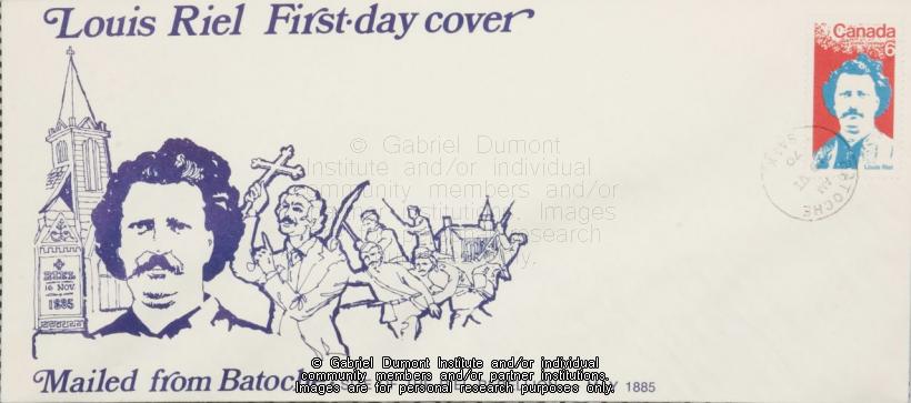 | Description: | Letter mailed with stamp issued by Canada Post on June 19, 1970 in commemoration of Métis leader Louis Riel. |