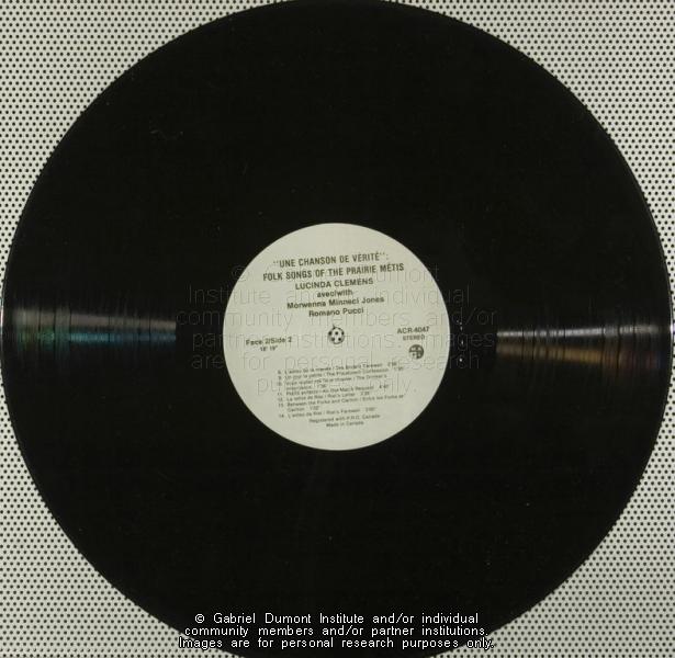 | Description: | “Une Chanson de Vérité”: Folk Songs of the Prairie Métis. |