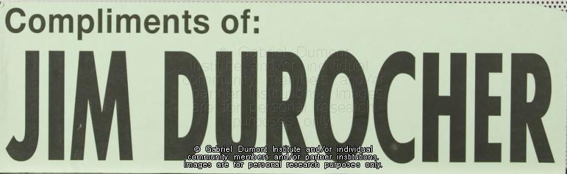 | Description: | Election advertising for Jim Durocher. |