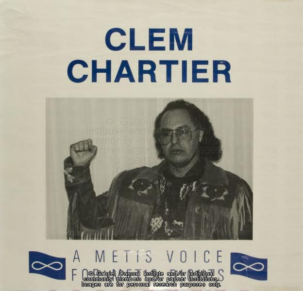 | Description: | "Clem Chartier: A Métis Voice for Métis Rights" election poster. |