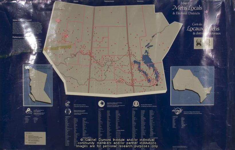 | Description: | Map showing Métis locals and electoral districts throughout Alberta, Saskatchewan, and Manitoba. |