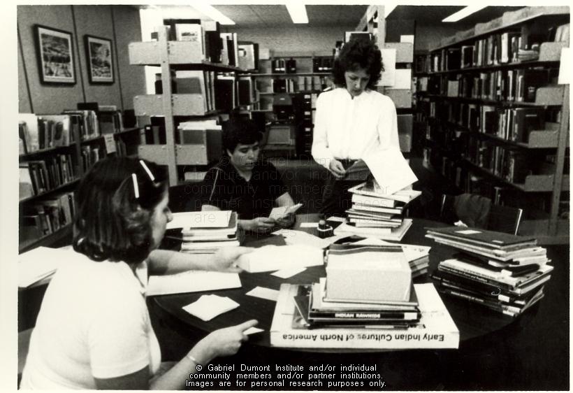 | Description: | Students at work at Gabriel Dumont Institute Library, Regina. |