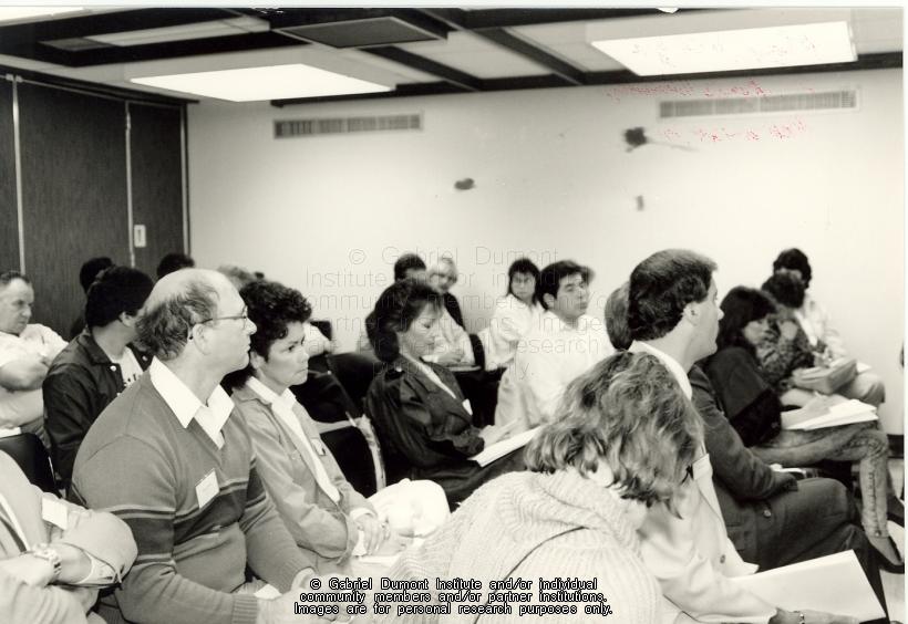 | Description: | Participants at the 1987 Gabriel Dumont Institute cultural and educational conference workshop, Regina.