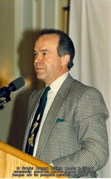 Grant Devine, Premier of Saskatchewan, at the Gabriel Dumont Institute "Education and the Family" Cultural and Educational Conference, Saskatoon, 1991. |