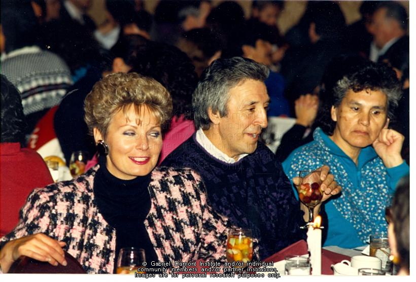 Lynda Haverstock, leader of the Saskatchewan Liberal Party, and Jim and Marie Favel, at the Gabriel Dumont Institute "Education and the Family" Cultural and Educational Conference, Saskatoon, 1991. |