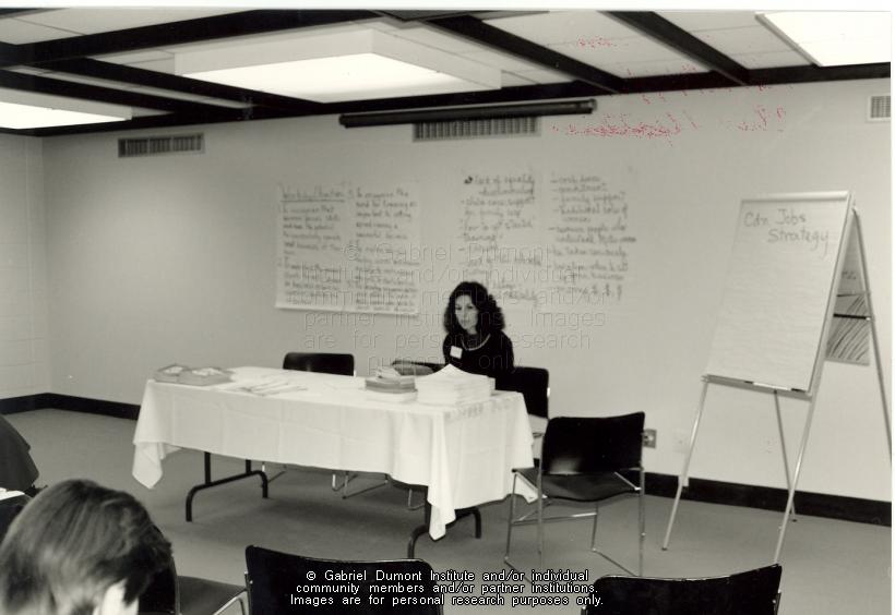 | Description: | Woman at the 1987 Gabriel Dumont Institute cultural and educational conference, Regina. |