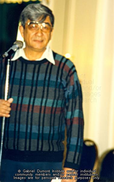 Ken Seeseequasis at the Gabriel Dumont Institute "Education and the Family" Cultural and Educational Conference, Saskatoon, 1991. |