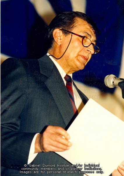 Louis Lamothe at the Gabriel Dumont Institute "Education and the Family" Cultural and Educational Conference, Saskatoon, 1991. |