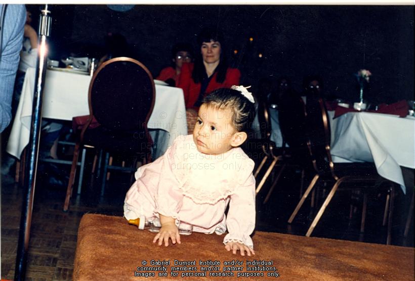 Mryna LaPlante’s baby at the Gabriel Dumont Institute "Education and the Family" Cultural and Educational Conference, Saskatoon, 1991. |