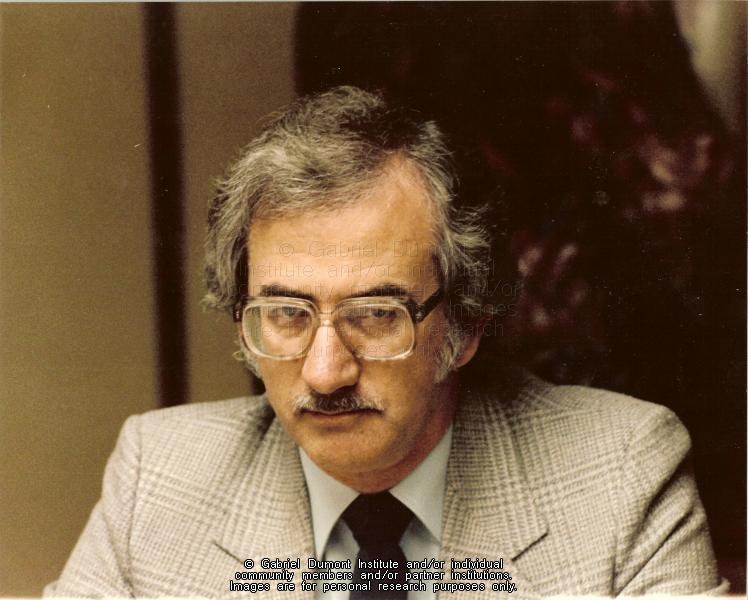 | Description: | Andre Nogue, federal government representative on Gabriel Dumont Institute board.