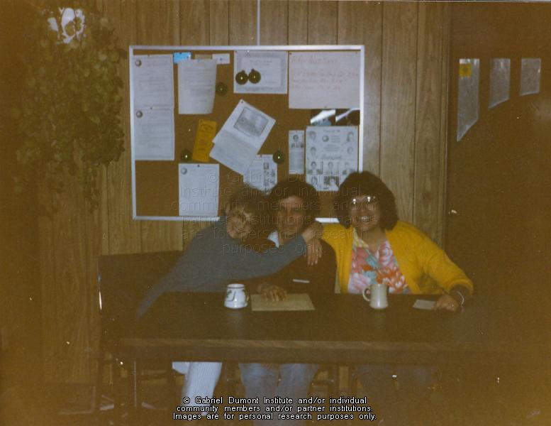 Gabriel Dumont Institute Business Administration staff, Joan Deschambault, Paul Tourond and Melona Palmer, Fort Qu’Appelle.