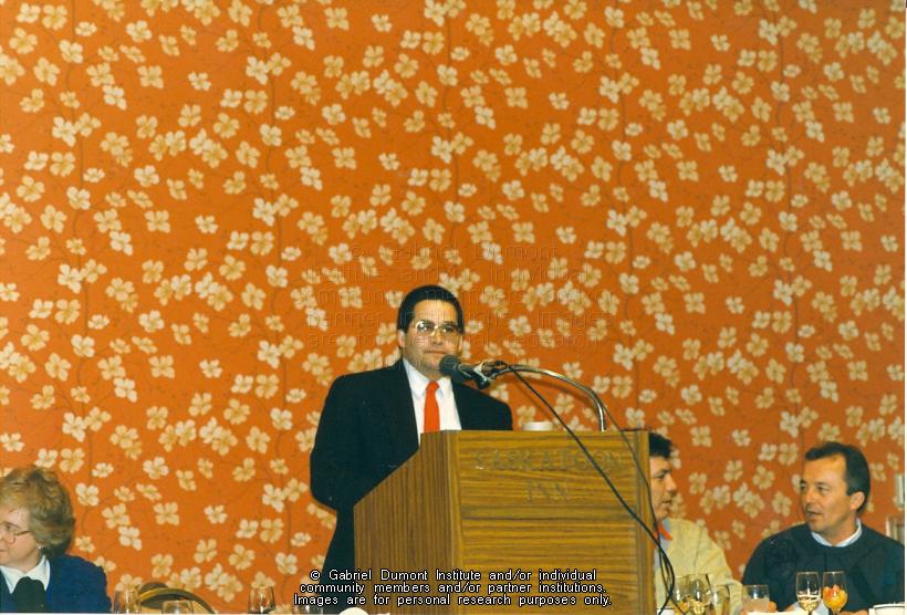 | Description: | Christopher LaFontaine speaking at a Gabriel Dumont Institute Cultural Conference, Saskatoon.