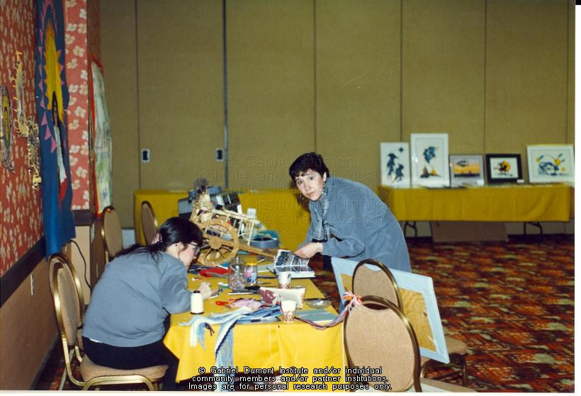 | Description: | Marylin Belhumeur (right), Gabriel Dumont Institute Library Technician.