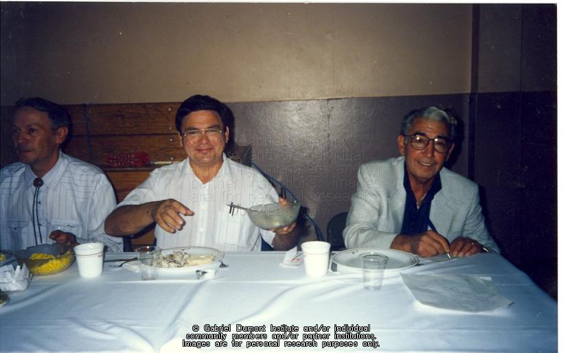 | Description: | Sentor John Boucher (right) and Yvon Dumont (middle) and Tony Camponi at a Gabriel Dumont Institute cultural conference.