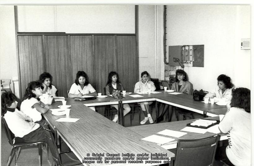 | Description: | Aboriginal Student Club Meeting. Left to Right: Brenda Issac, Lynn Bear, Karen Gordon, Christine Belanger, Bonnie Shing, Charlene Eashappie, Rywanna Morelike, and Agnes Blue.