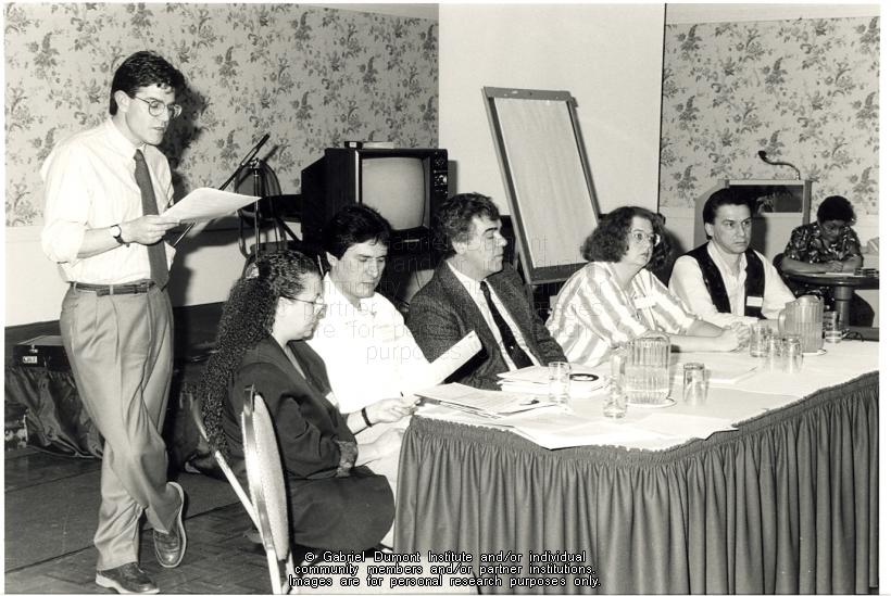 | Description: | Session with Dr. James McNinch at a Gabriel Dumont Institute cultural conference. |