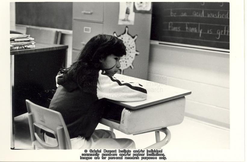 | Description: | SUNTEP intern Sharon Poitras’ class, March 1988. |