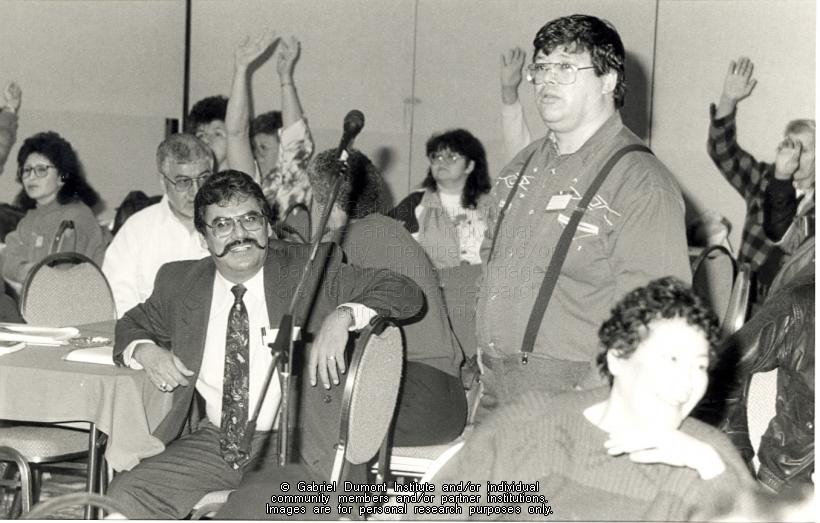 | Description: | Past Gabriel Dumont Institute board member Max Morin speaking at a Gabriel Dumont Institute cultural conference in Saskatoon in 1993. |