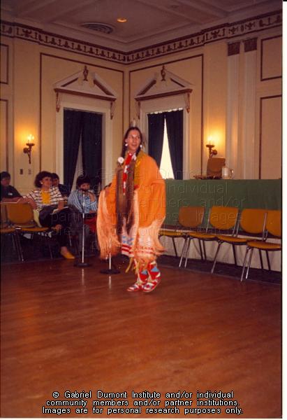 | Description: | First Nations Dancer at a Gabriel Dumont Institute cultural conference. |