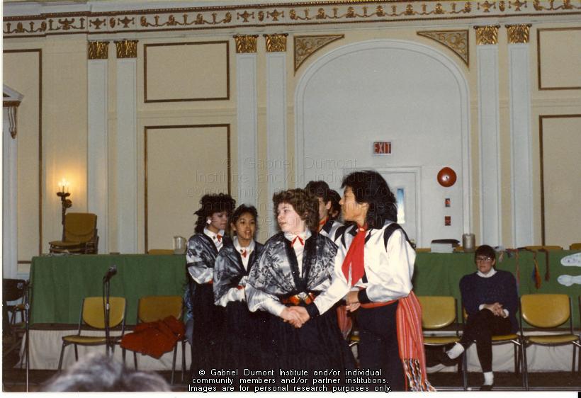 | Description: | Métis dancers at a Gabriel Dumont Institute cultural conference. |