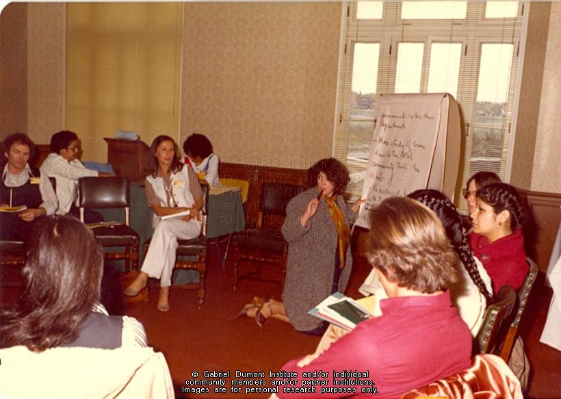 | Description: | Session with Rita Bouvier at an early Gabriel Dumont Institute cultural conference. |