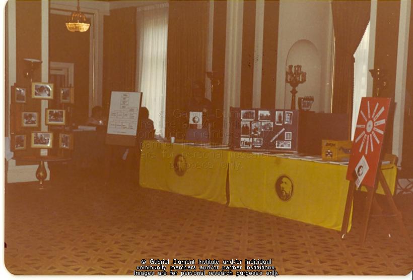 | Description: | Gabriel Dumont Institute display at an early Gabriel Dumont Institute cultural conference. |