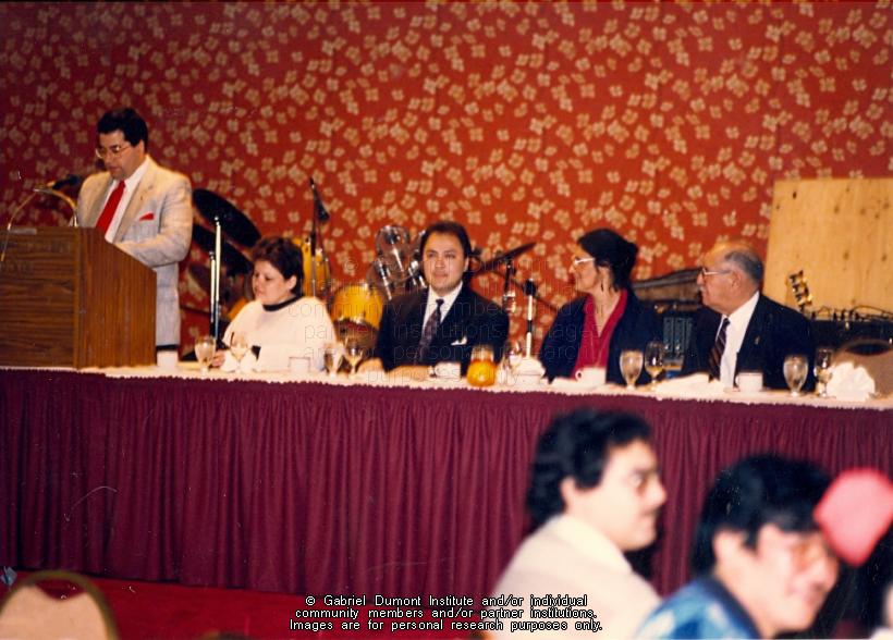 | Description: | Christopher LaFontaine and Maria Campbell and others at a GDI cultural conference in the 1990s. |