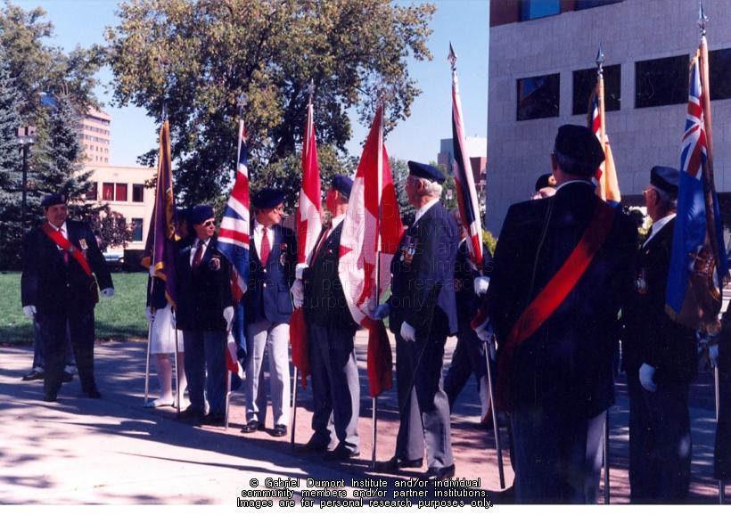 | Description: | Honour Guard in front of City Hall in Prince Albert just before the Métis Veterans' book launch. |