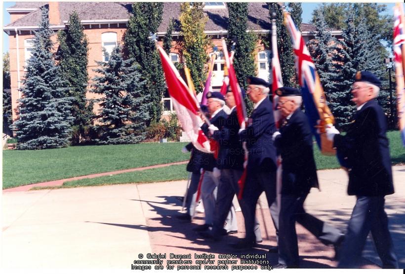 | Description: | Honour Guard in front of City Hall in Prince Albert just before the Métis Veterans' book launch. |