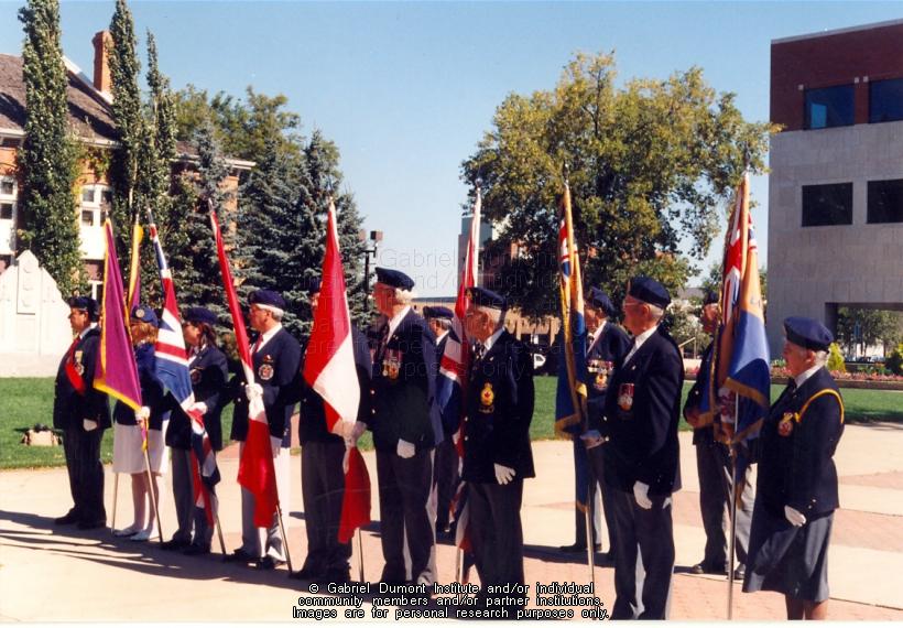 | Description: | Honour Guard in front of City Hall in Prince Albert just before the Métis Veterans' book launch. |