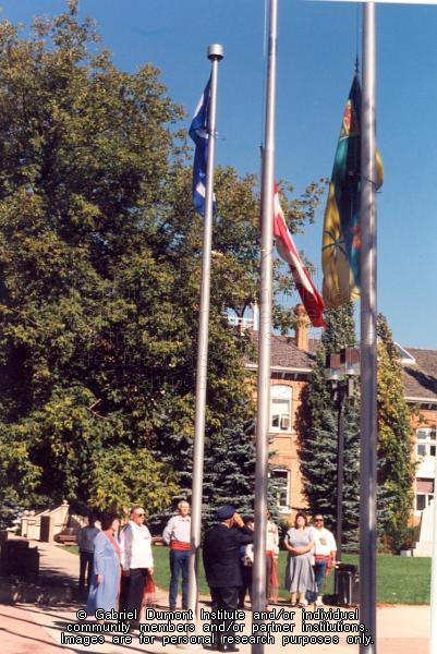 | Description: | Honour Guard with Max Lucier in front of City Hall in Prince Albert just before the Métis Veterans' book launch. |