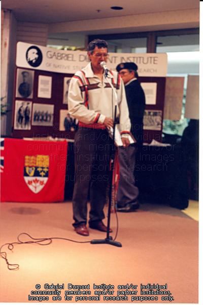 | Description: | Louis Dorion in Prince Albert at the Métis veterans' book launch. |