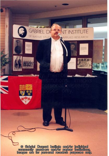 | Description: | Greg Dionne, owner of the shopping mall, speaking at the Métis veterans' book launch in Prince Albert. |