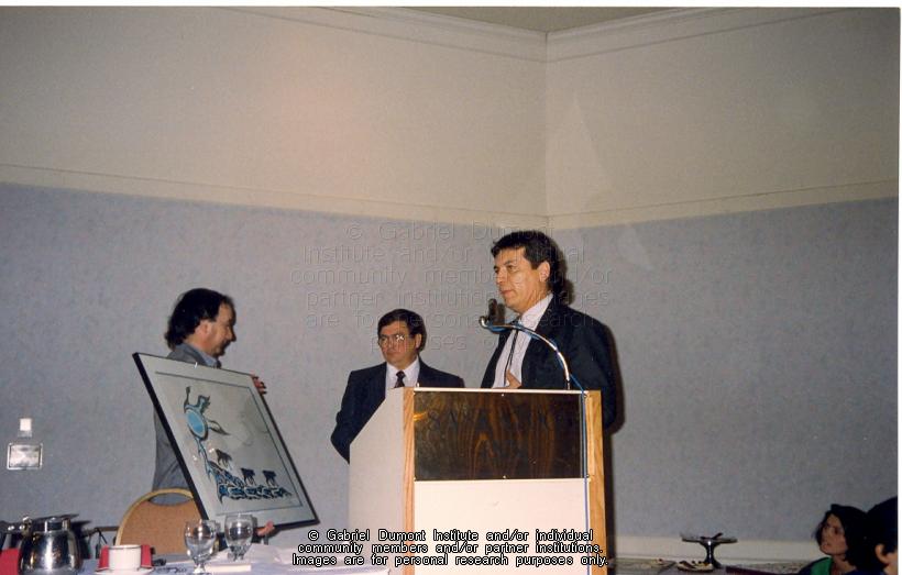| Description: | (Left to right): Murray Hamilton, Yvon Dumont and Philip Chartier at a community event. |