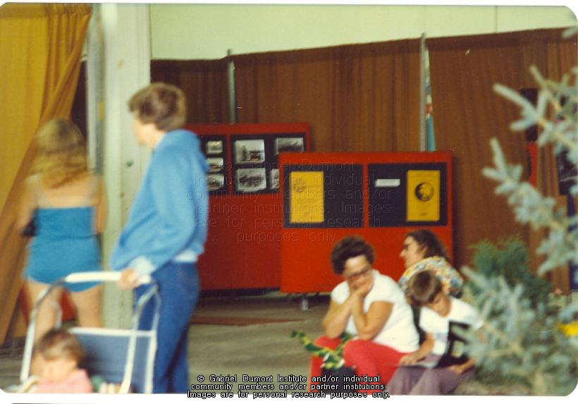 | Description: | People in front of Gabriel Dumont Institute display in Regina. |