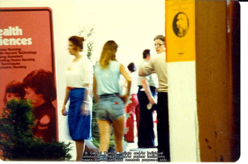 | Description: | People entering Gabriel Dumont Institute display in Regina. |