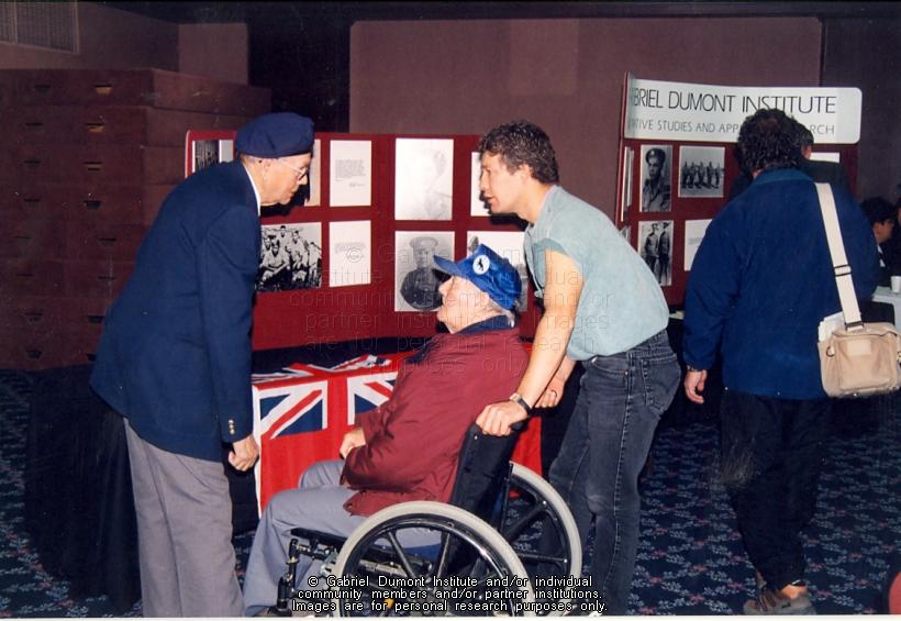 | Description: | Vital Morin with his grandson and Charlie Umpherville at the launch of Remembrances: Interviews With Métis Veterans in Saskatoon. |