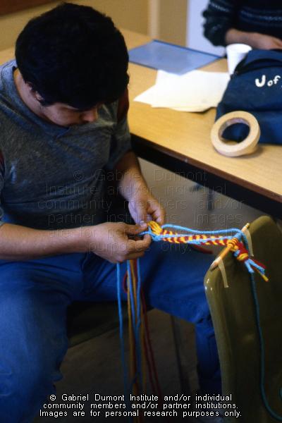 | Description: | SUNTEP Saskatoon student finger weaving. |