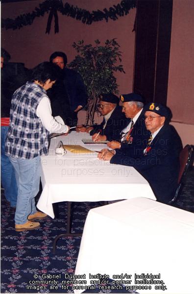 | Description: | Book launch of "Remembrances: Interviews with Métis Veterans" in Saskatoon in 1997. |